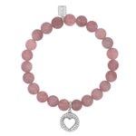 Rose Quartz Bracelet with Diamond Open Heart Charm - 8mm