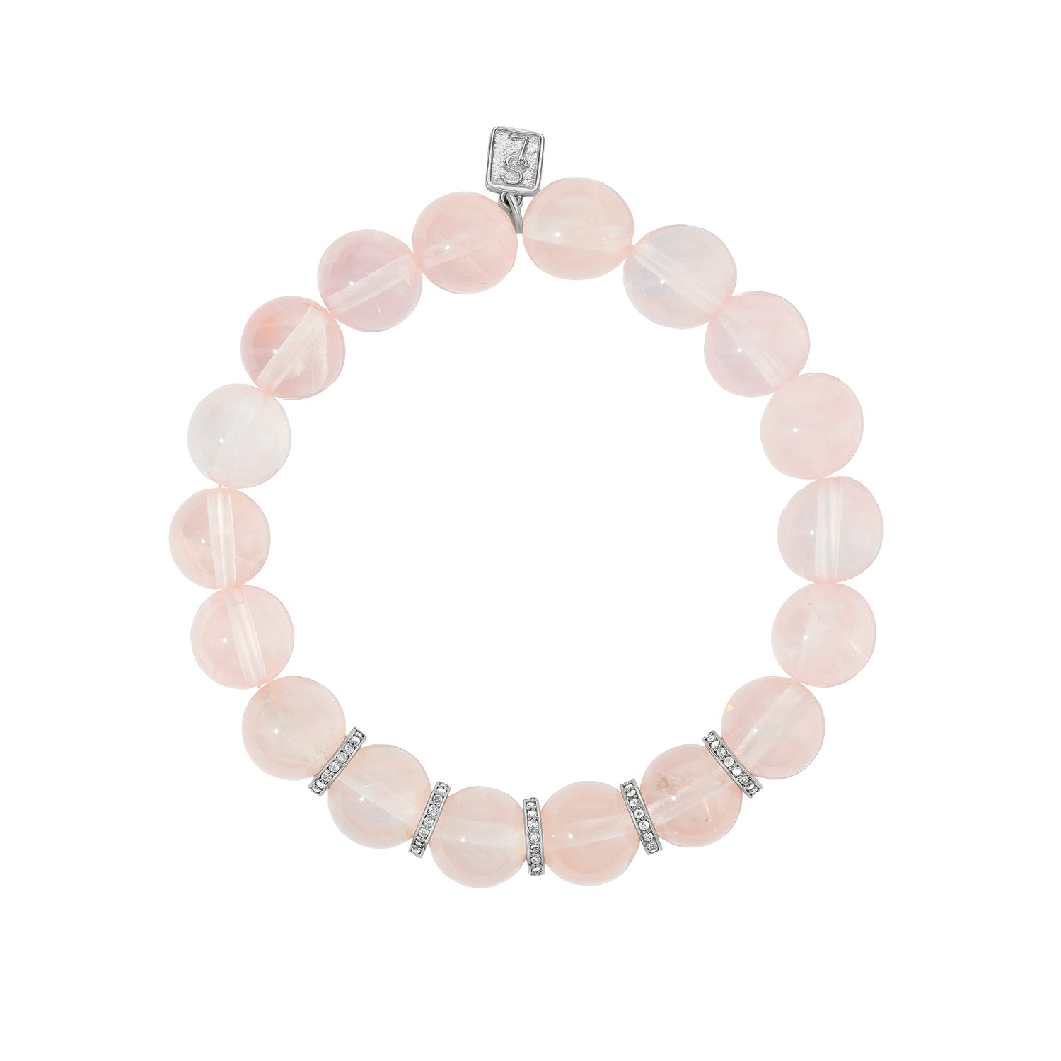 - 10mm Rose Quartz bracelet with 5 diamond rondelles