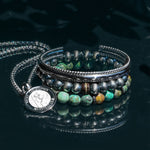 Men's Mr. LOWE Silver Bead Bracelet with African Center Bead - 8mm