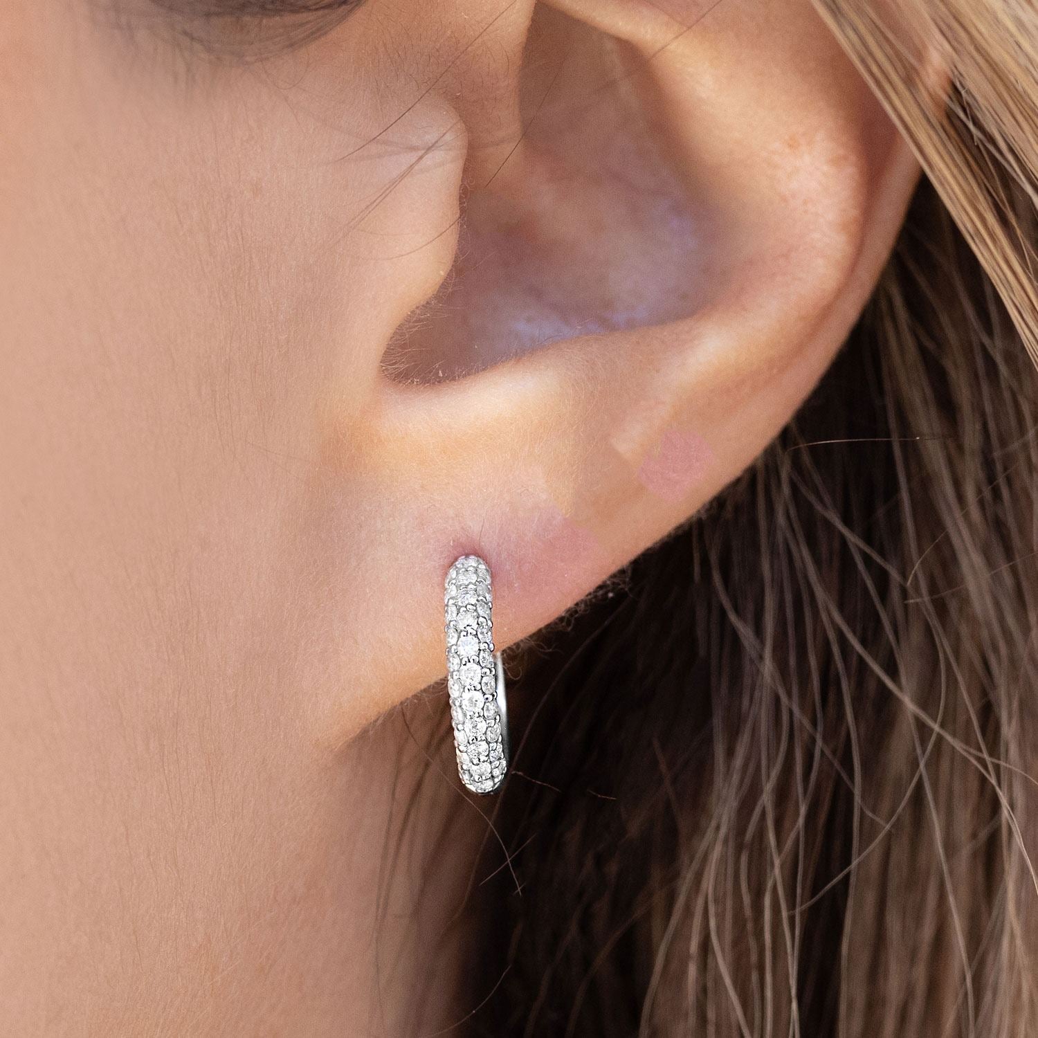 Silver Pave Diamond Huggie Hoop Earrings - 15mm