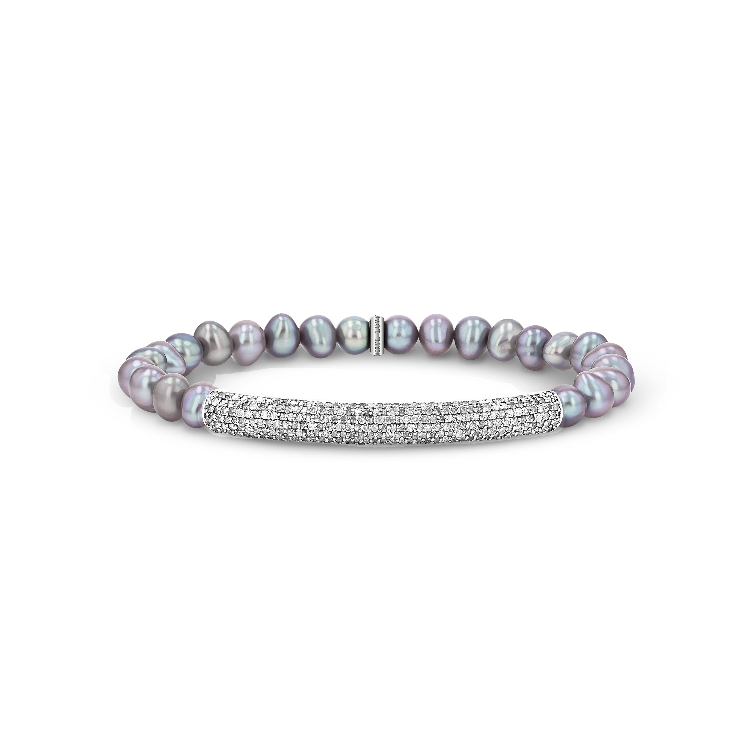 Silver Freshwater Pearl Bracelet with Diamond Bar - 8mm