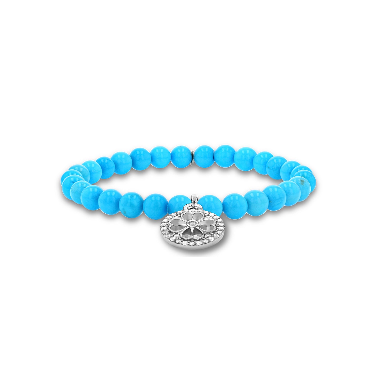 Sleeping Beauty Turquoise Bracelet with Diamond Open Clover Charm - 6mm