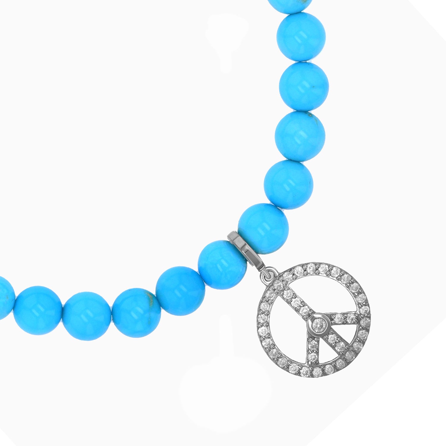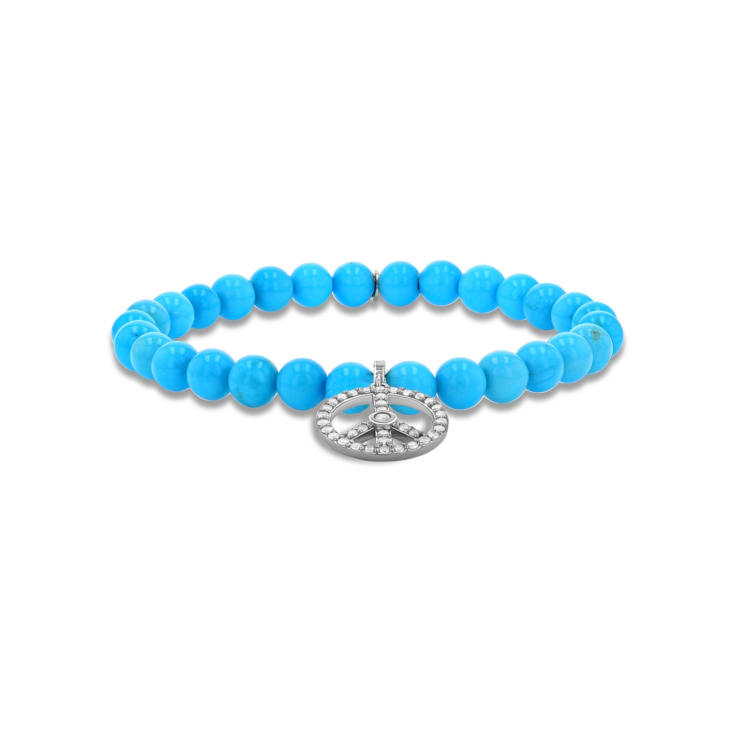 Sleeping Beauty Turquoise Bracelet with Diamond Peace Sign Charm - 6mm
