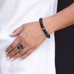 Spinel Bead Bracelet with Silver & Black Diamond Rondelle Cluster - 10mm