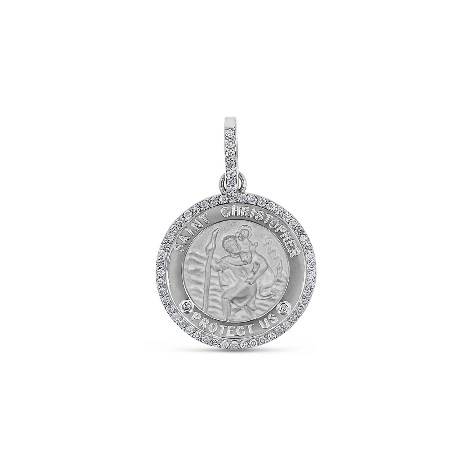 Silver St. Christopher "Protect Us" Diamond Halo Medallion Pendants & Necklaces