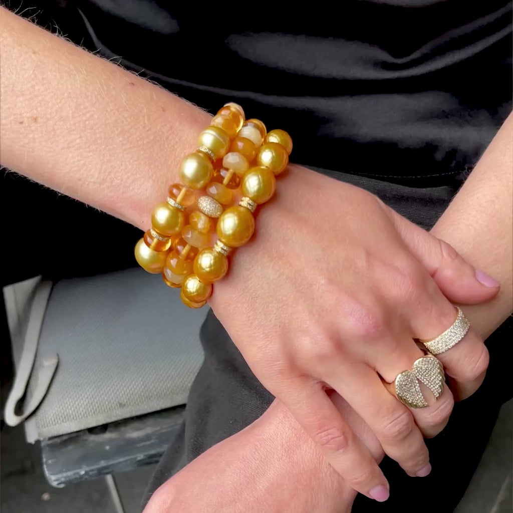 The Loren Stack - 14k South Sea Pearls & Yellow Mix Beaded Bracelets - One of a Kind