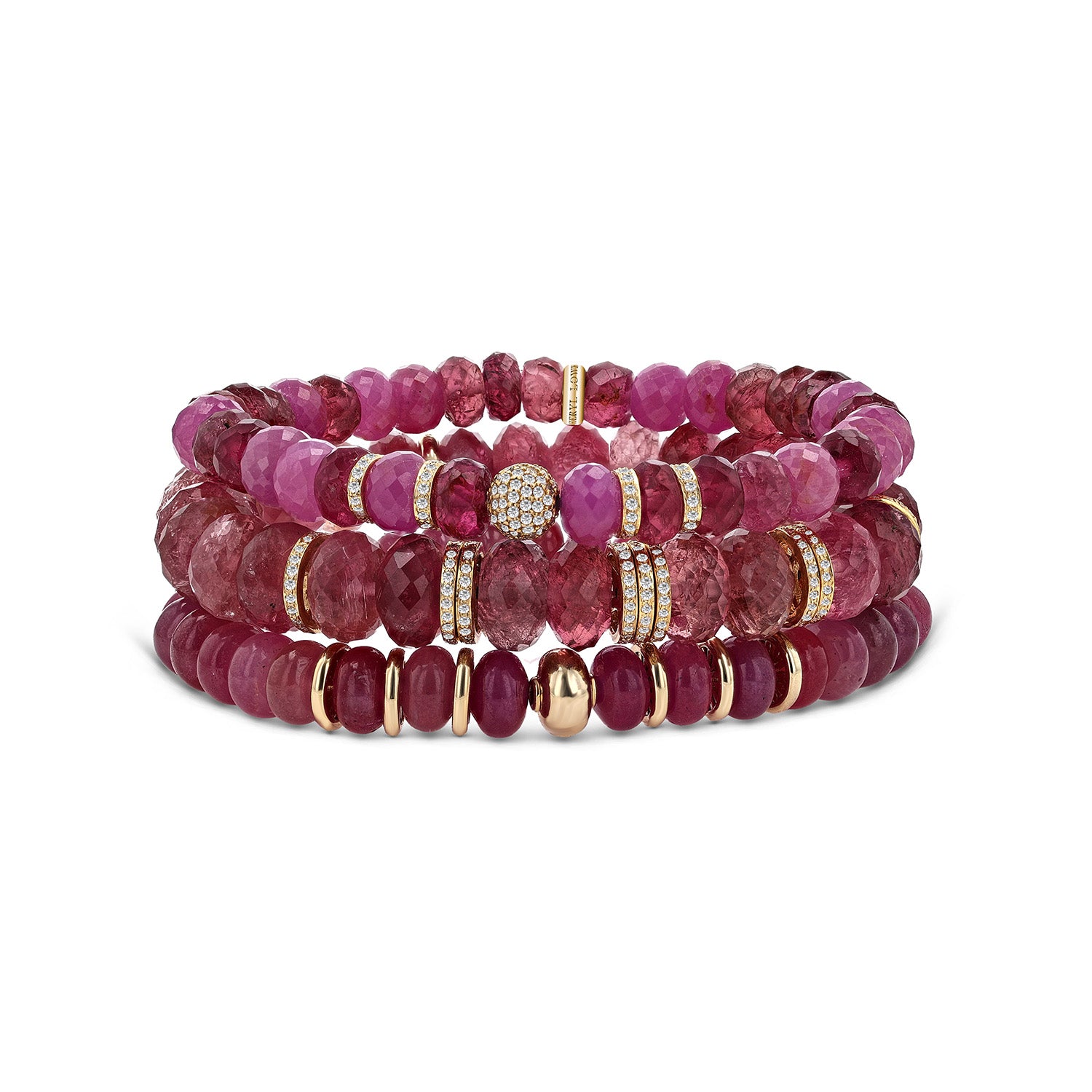 The Monroe Stack - 14k Tourmaline and Pink Sapphire Bracelets - One of a Kind
