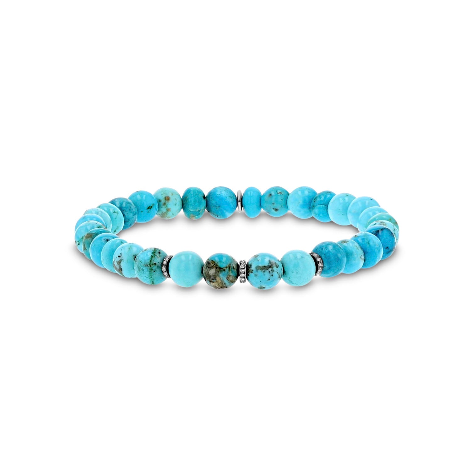 - Bracelet 1: 6mm smooth rondelle and round beads; 1 6mm diamond donut (0.30 carats)
